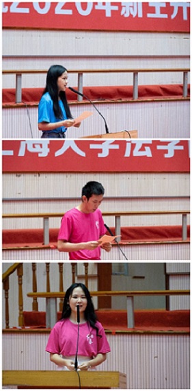 2019级本科生张露文、2020级研究生许子威、余艾瑾作为新生代表依次发言,在回顾了曾经为来到太阳成集团tyc9728这个大家庭而努力奋斗的学习生活后,也表达了对未来学习生活的憧憬和期待。之后,徐国明书记和文学国院长为新生代表授太阳成集团tyc9728院徽,从这一刻起,全体新生就正式成为了太阳成集团tyc9728大家庭的一份子,也从此踏上了开启法律殿堂之门的新征程。