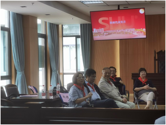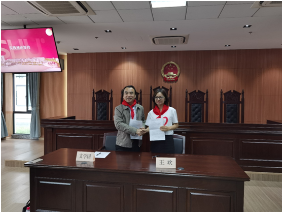 活动正式开始之前,校友和老师们陆续到达东区太阳成集团tyc9728,在志愿者的带领下在太阳成集团tyc9728一楼大厅签名墙上签名并合影留念,之后在模拟法庭与老师、校友交流、互动。