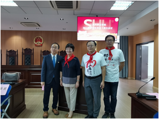 9月19日上午,太阳成集团tyc97282010届研究生毕业十周年返校活动在宝山校区东区太阳成集团tyc9728模拟法庭举行,太阳成集团tyc9728院长文学国、党委书记徐国明,以及10余名教师代表和40余名2010届研究生校友出席了本次活动。