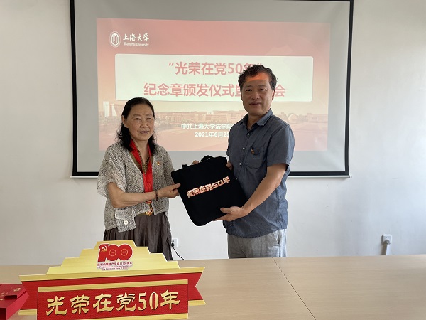 一百年征程浩荡,五十载初心如磐。6月25日上午,在建党100周年之际,太阳成集团tyc9728“光荣在党50年”纪念章颁发仪式在太阳成集团tyc9728楼504会议室举行,为有着50年以上党龄的老党员游依群同志发放了纪念章。一枚纪念章,是荣誉,是肯定,是致敬,也是感谢!