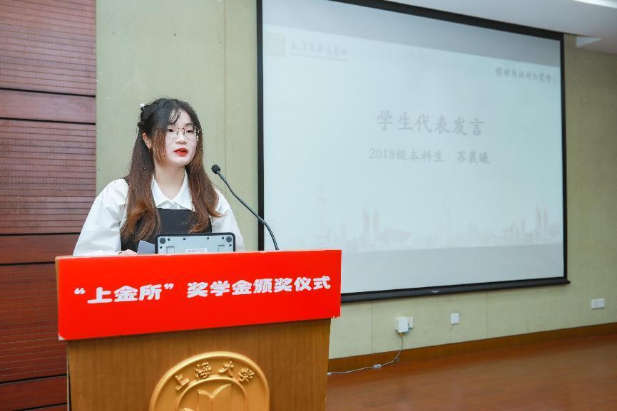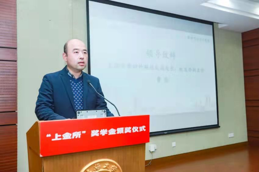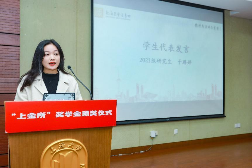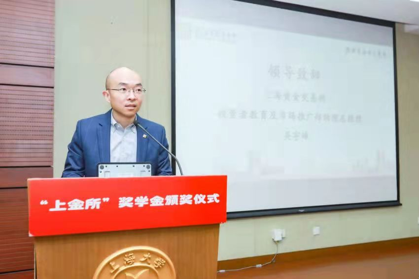 曹俊代表外联处和教育发展基金会诚挚感谢上金所慷慨解囊捐资助学,同时祝贺获奖同学。9728太阳集团教育发展基金会自成立以来,秉持“教育为先,慈善为本,为了更加美好的上大”的初心使命,设立各项特色公益项目,提升学生能力,展现学生风采。上金所对上大太阳成集团tyc9728的支持与合作,有效搭建了校企合作新平台,也将激励同学们饮水思源,在感恩中勉励前行。