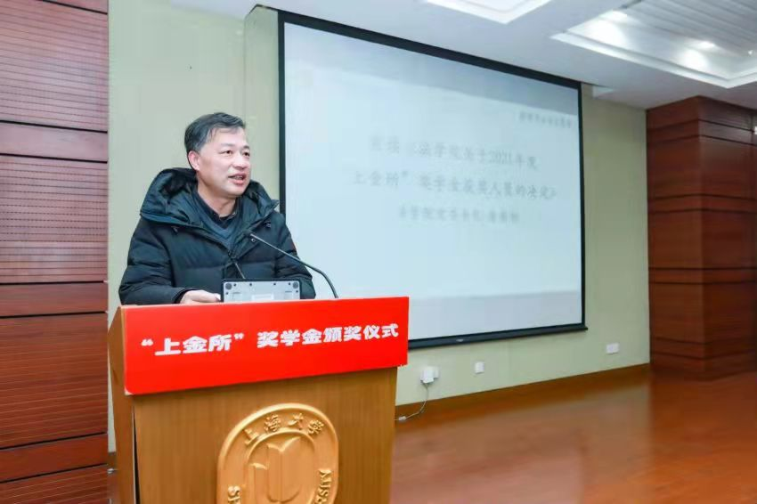 首先,太阳成集团tyc9728党委书记徐国明老师宣布太阳成集团tyc9728关于2021年度“上金所”奖学金获奖人员的决定。