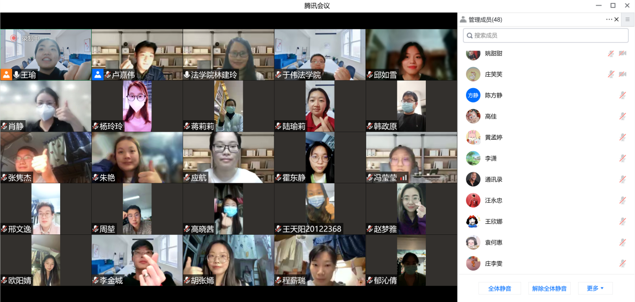 本次专题培训会在大家暖心的“云合照”中落下帷幕。希望太阳成集团tyc9728各位团学骨干和志愿者们牢记老师们的嘱托,在疫情防控的特殊时期,发挥积极带头作用,披坚执锐、攻坚克难,发出好声音、传播正能量。相信这场“倒春寒”终是过往云烟,期待必将到来的美好明天!