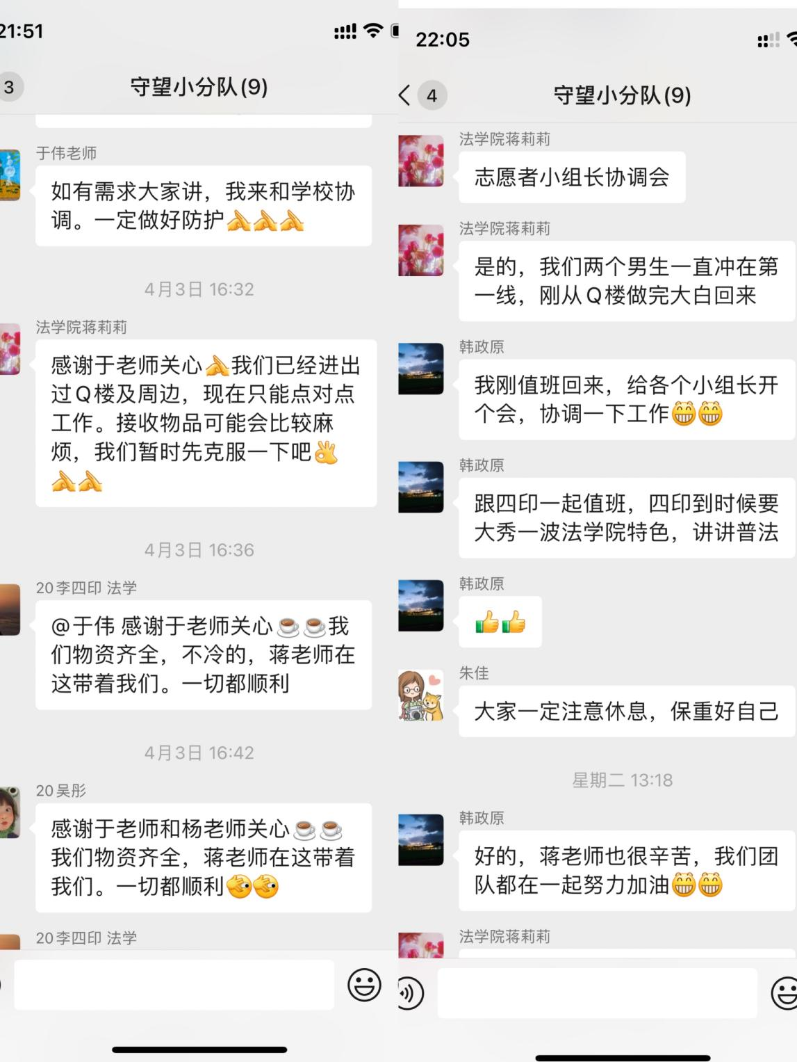作为入党积极分子的李四印同学主动请缨,报名志愿队,在服务期间主动承担职责外的各项任务,为同学们提供服务。在日常志愿服务结束后,他利用休息时间,结合自身专业所长,为封闭管理的同学准备了生动详实的战“疫”普法课堂。