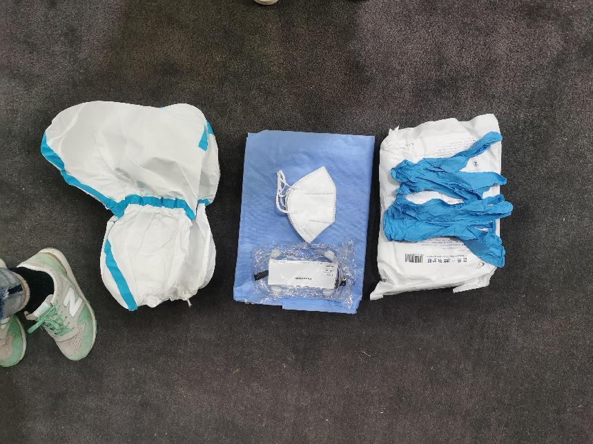 得知同年级男生均在Q楼封闭管理,研究生一年级的两位女支部书记肖静、杨玲玲表示:“只要有需要,我们随时出发。”在本次志愿活动中,她们穿上防护服与志愿队其他老师和同学们,将每日的餐饮、抗原试剂盒,分发到同学们的手中。战“疫”过程中,她们冲锋在前,彰显着“巾帼不让须眉”的精神。