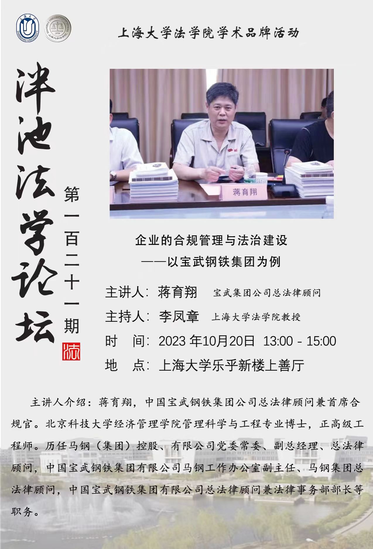 泮池法学论坛第121期 :企业的合规管理与法治建设 一以宝武钢铁集团为例