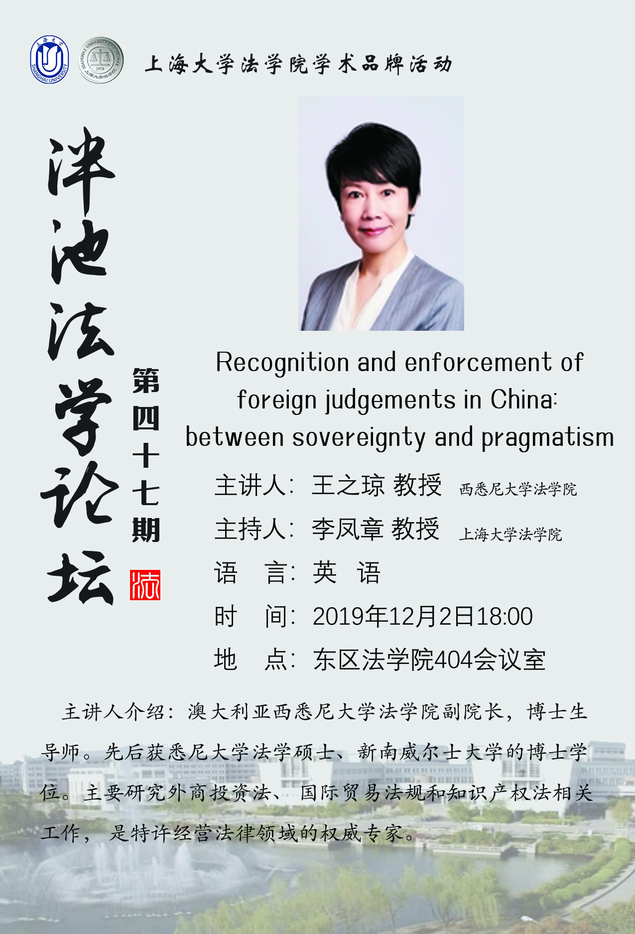 上一条:泮池法学论坛第48期预告:夫妻共同债务认定标准及家庭财富风险管理 下一条:泮池法学论坛第46期预告:BRI 2.0 and Policy Shift in the Implementation of Belt & Road Initiative