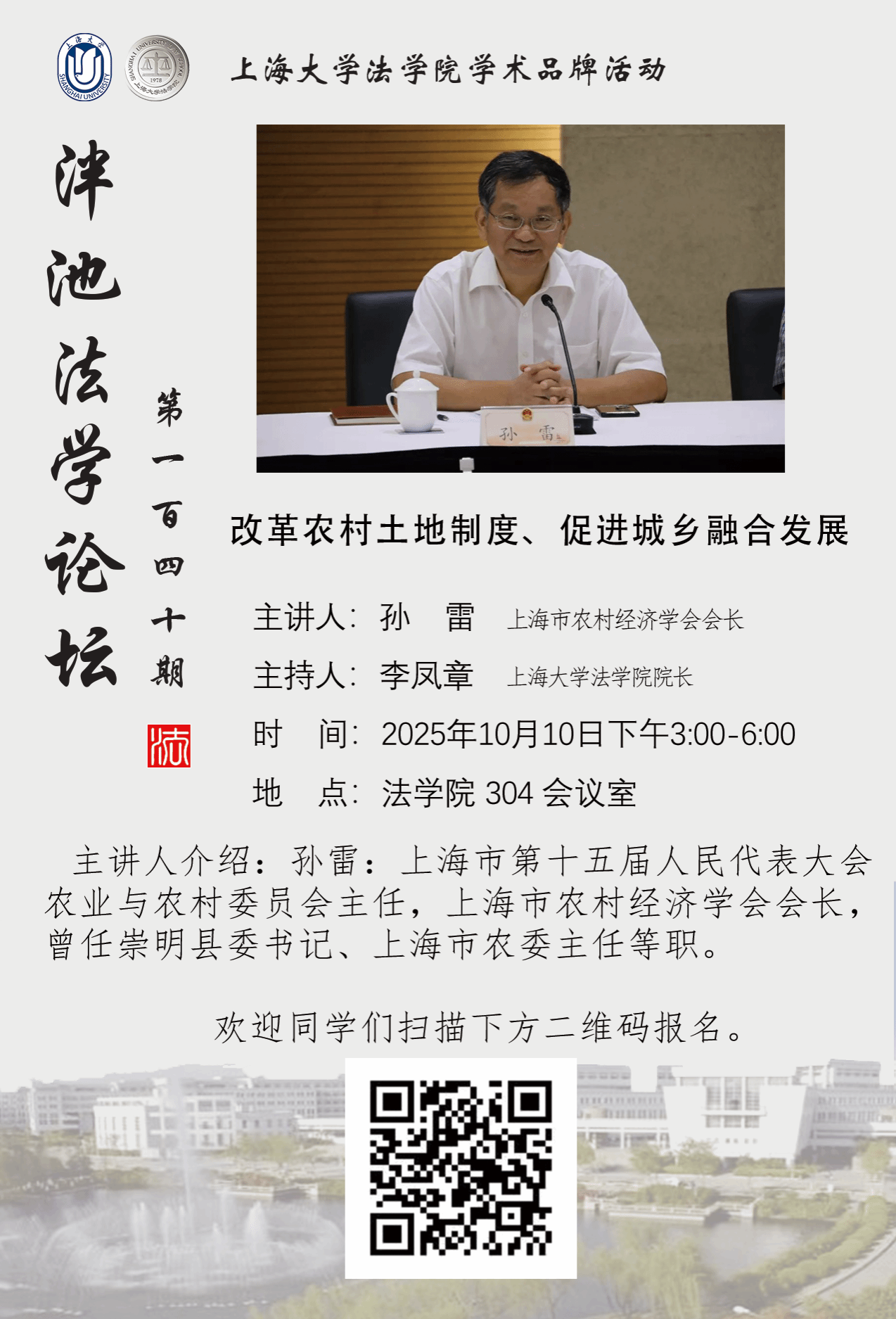 泮池法学论坛第140期:改革农村土地制度、促进城乡融合发展