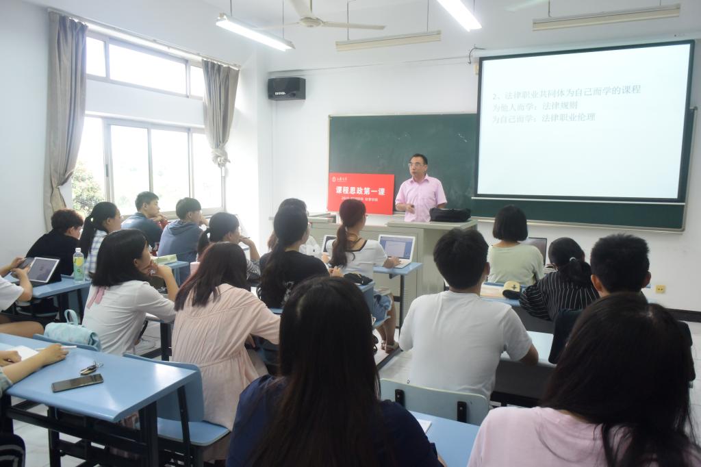 课上,文学国教授解读了教育部文件精神,强调对该课程的学习要贯穿社会主义法治人才培养的始终,同时,他还详细阐述了学好该课程与培育“平等、公正、法治、爱国、敬业、诚信、友善”等社会主义核心价值观密不可分的关系。