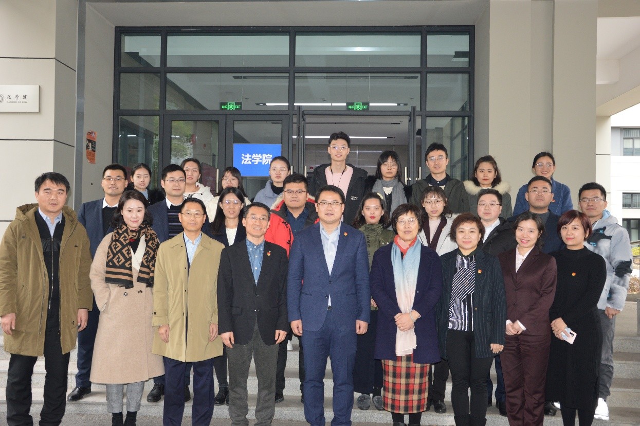 随后,大家来到太阳成集团tyc9728大楼门口进行合影留念。影毕,在王国正老师的带领下,大家一同参观太阳成集团tyc9728一楼模拟法庭,并就金融行业与律师职业发展展开了充分的交流。