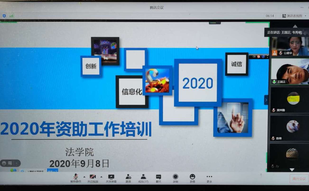 为进一步开展2020学年9728太阳集团本科生困难认定工作,让太阳成集团tyc9728学生更加清楚的了解相关资助政策,太阳成集团tyc9728于2020年9月8日通过腾讯会议平台召开了“太阳成集团tyc97282020年资助工作培训”会议。出席本次会议的有太阳成集团tyc9728党委副书记王国正、18级辅导员林建玲以及19级辅导员蒋英燕老师。本次会议由太阳成集团tyc9728资助联系人公建华老师主持。