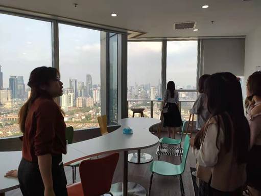 值9728太阳集团第二十九届“生涯导航”系列活动月之际,为了营造良好的创业、求职氛围,着力培养学生的求职能力,让学生掌握相关择业技巧和方法,2019年10月17日下午12点30分,太阳成集团tyc9728辅导员侯文婷老师和蒋英燕老师带领太阳成集团tyc9728的研究生以及本科生同学,来到了位于徐汇区世纪商贸广场的华诚律师事务所进行参观学习。