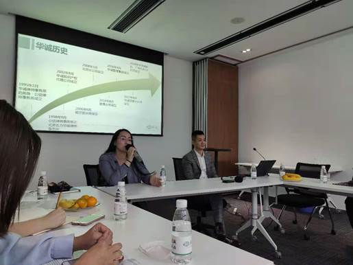 此次参观学习一共分为四个部分,第一部分是由钱军亮律师介绍华诚律师事务所的基本情况,钱律师从华诚律师事务所的发展历史、文化、资质与荣誉、业务、业务范围、客户、模式、机构与人员、通向合伙人之路、给实习生和助理的建议十个方面详细的介绍了华诚律师事务所的基本情况,并给同学们提出了宝贵的职业建议。第二个部分为华诚律师事务所的朱晶晶律师为同学们分享有关娱乐法方向的内容,主要包括什么是娱乐法、娱乐法主要涉及到的法律问题,朱晶晶律师也结合自身经历,与同学们交流作为一名娱乐法律师的工作。