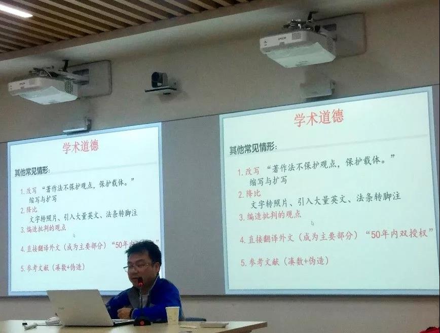 首先,陈敬根老师向大家强调了学术道德的重要性,对常见的几种学术不端行为一一做了批评,并强调了违反学术道德的严重后果,告诫大家要遵守学术规范。作为一名研究生,在形成良好的学术风气、塑造浓厚的学术氛围、建立诚信的学术机制、培养自觉的学术意识等方面肩负着重任,理应成为学术道德的遵守者和学术规范的恪守者。