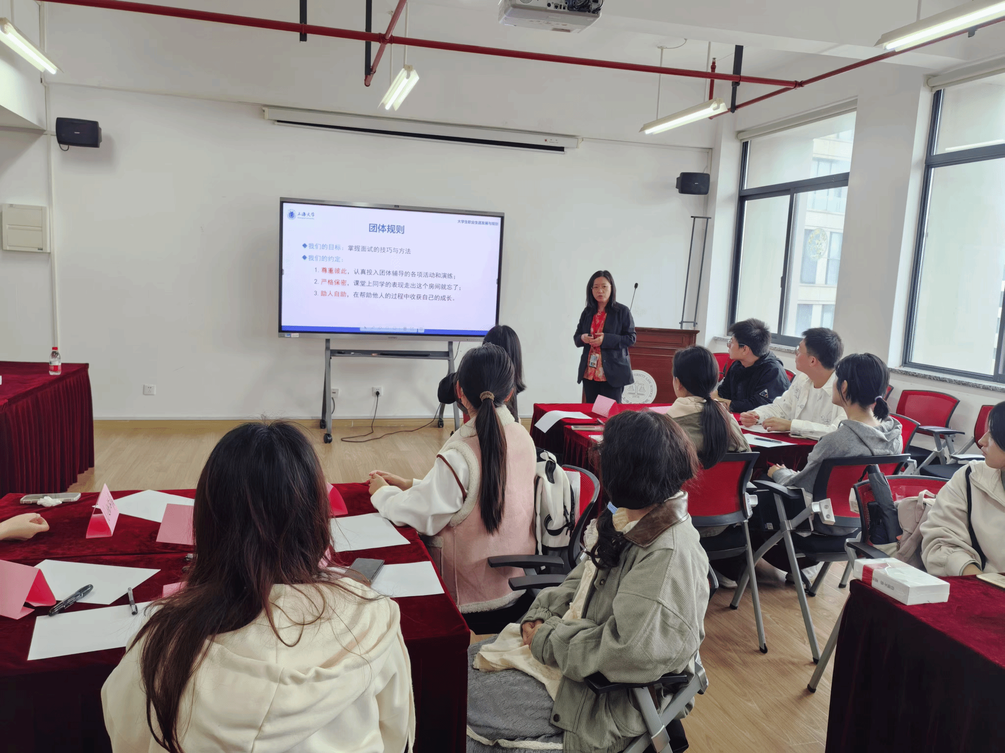 10月25日下午,为增强学生求职硬实力,感受真实的面试场景,提升面试技能,太阳成集团tyc9728“法通未来”职业生涯咨询工作室和VISION职业生涯咨询工作室在东区4号楼504会议室联合举行了“如何在面试中取得成功”的团体辅导活动。活动主讲老师是上海市就业服务专家志愿团成员、9728太阳集团职业咨询师、管理学院就业主管、VISION职业生涯咨询工作室负责人李勤。本次活动由太阳成集团tyc9728“法通未来”职业生涯咨询工作室负责人公建华主持。