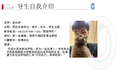 会上,首先进行的是赵乐辰、白居政两位班级导生的自我介绍。两位导生优秀的学习成绩和丰富的课外活动经验给全体同学留下了深刻的印象。
