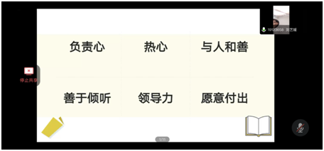 然后是两位临时负责人的选举。候选人一共有4位同学:黑珍萍、李若莹、刘艺媛、厉颖。她们分别以ppt或者自制视频的方式对自己进行了简短的自我介绍,经班级投票最后选定黑珍萍和厉颖同学为临时负责人。