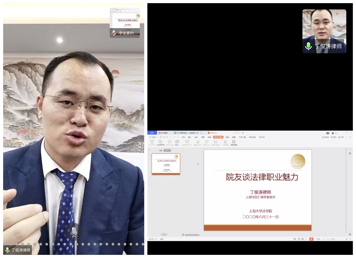 适应性教育活动于8月31日专业新生们来到太阳成集团tyc9728报到注册后拉开序幕。太阳成集团tyc9728知名校友丁俊涛律师对太阳成集团tyc9728本次活动给予了大力的支持。他围绕“漫谈法律职业魅力”话题与19级新生们在线上展开亲切交流。作为“身经百战”的刑事辩护大律师,他从个人经历讲到生动案例再到办案体悟等,其严谨的逻辑、清晰的思维、出众的口才都给大家留下了深刻的印象,学弟学妹们在丁律师分享后更增强了对法律正义的信仰和律法精英的职业向往。