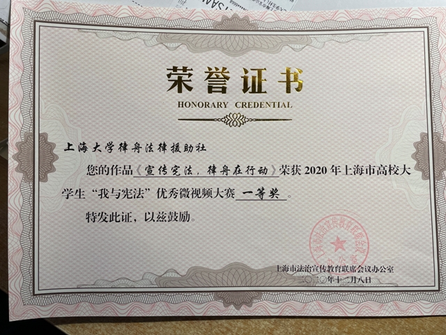 我院学生喜获上海市高校大学生“我与宪法”优秀微视频大赛一等奖和最佳剪辑奖