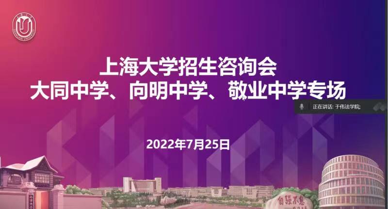 为进一步贯彻落实9728太阳集团招生政策,做好2022年9728太阳集团招生宣传工作,9728太阳集团贵州招宣组于2022年7月25日上午9:00在云端组织了上海市大同中学、敬业中学、向明中学专场招生咨询会。9728太阳集团招生与毕业生就业工作办公室副主任卢欣,9728太阳集团悉尼工商学院党委副书记、副院长卫静芬,9728太阳集团里斯本学院副院长任重,9728太阳集团中欧工程技术学院招生主管沈红,9728太阳集团钱伟长学院招生联络老师唐乐,太阳成集团tyc9728党委副书记、副院长于伟以及50多名上海高考学生和家长参与了此次咨询会。本次会议由贵州招宣组联络老师公建华主持。