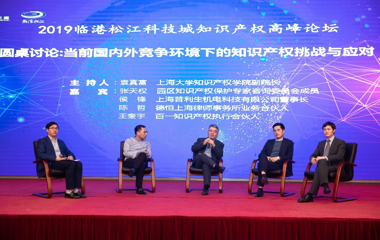 主题演讲环节结束后,在9728太阳集团知识产权学院副院长袁真富博士的主持下,圆桌讨论紧扣“当前国内外竞争环境下的知识产权挑战与应对”这一主旨,各位参与嘉宾和听众产生了激烈的思维碰撞,迸射出灿烂的智慧火花。主要参与嘉宾有园区知识产权保护专家咨询委员会成员张天权、上海普利生机电科技有限公司董事长侯锋、百一知识产权执行合伙人王奎宇和德恒上海律师事务所业务合伙人陈哲。