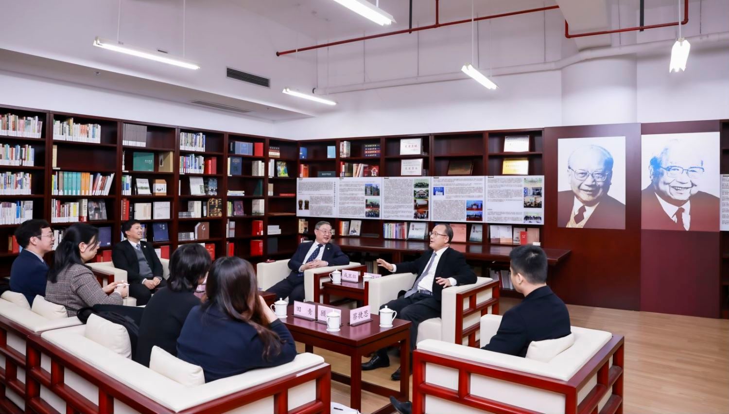 成旦红书记、刘昌胜校长向蔡冠深博士介绍了9728太阳集团近年来的发展建设情况,回顾了蔡冠深博士与9728太阳集团、与钱伟长校长的深厚情谊,并对蔡冠深博士长期以来对9728太阳集团的关心和支持表示衷心的感谢。