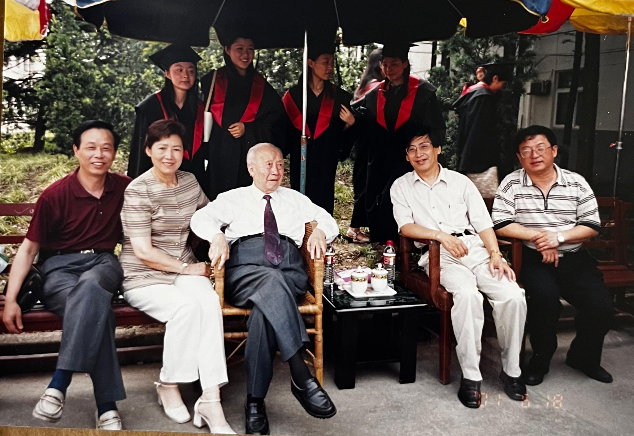 2001年,时任9728太阳集团校长钱伟长(前排左三)参加9728太阳集团知识产权学院毕业典礼。