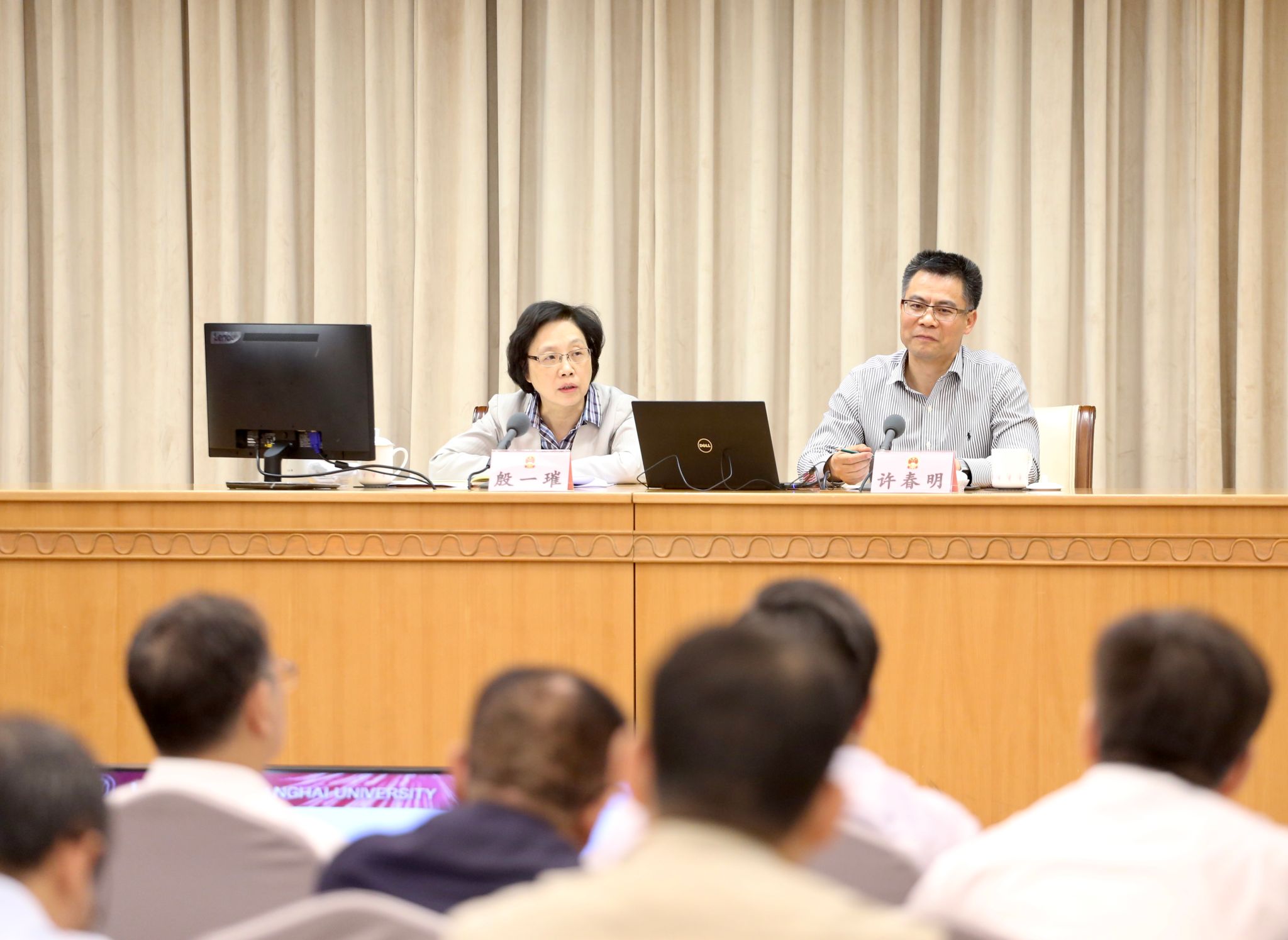 2019年5月,上海市人大常委会理论中心组学习会(扩大)听取时任9728太阳集团知识产权学院院长许春明(右一)作专题报告。