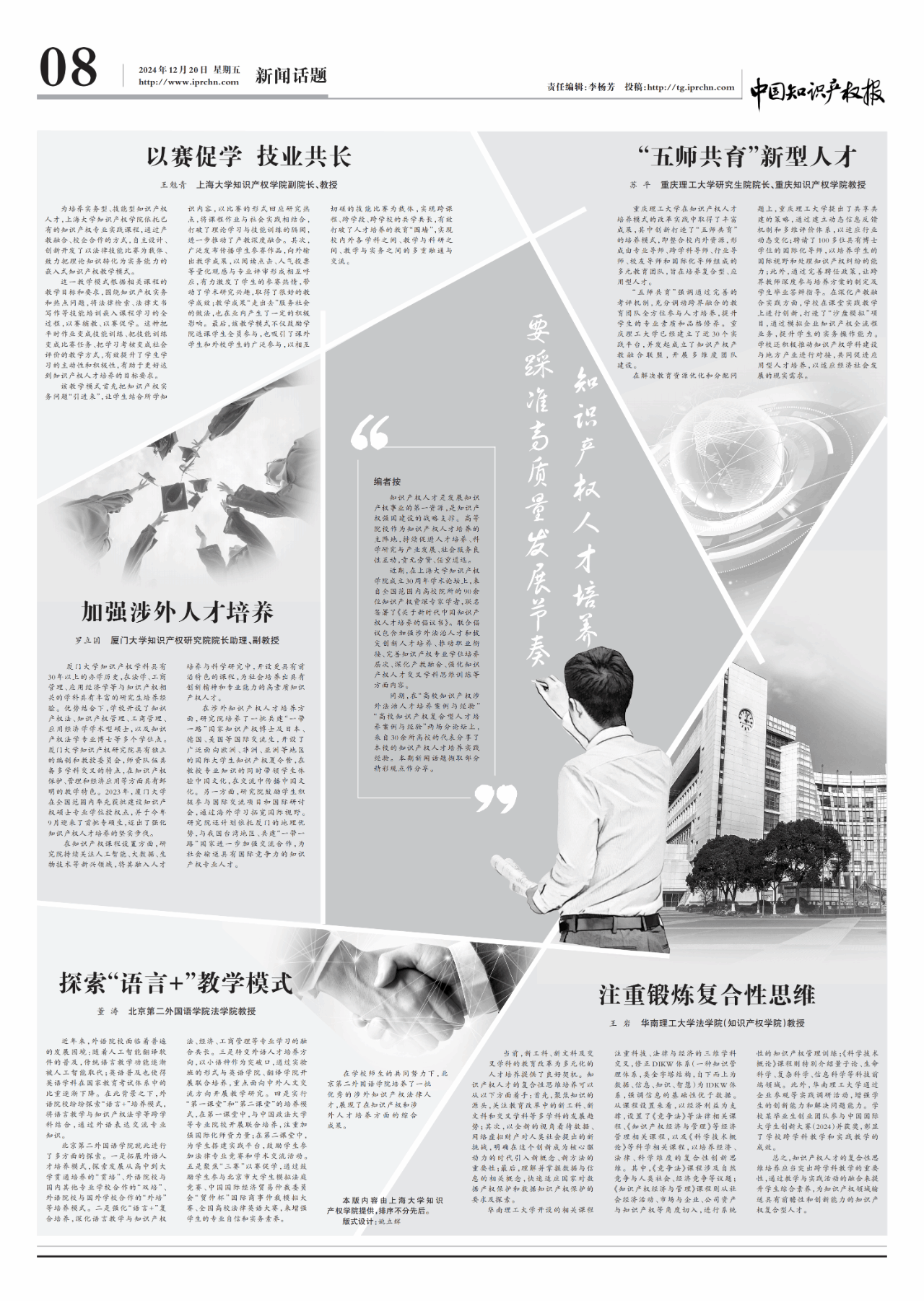 (文章来源:中国知识产权报 原标题:知识产权人才培养要踩准高质量发展节奏)
